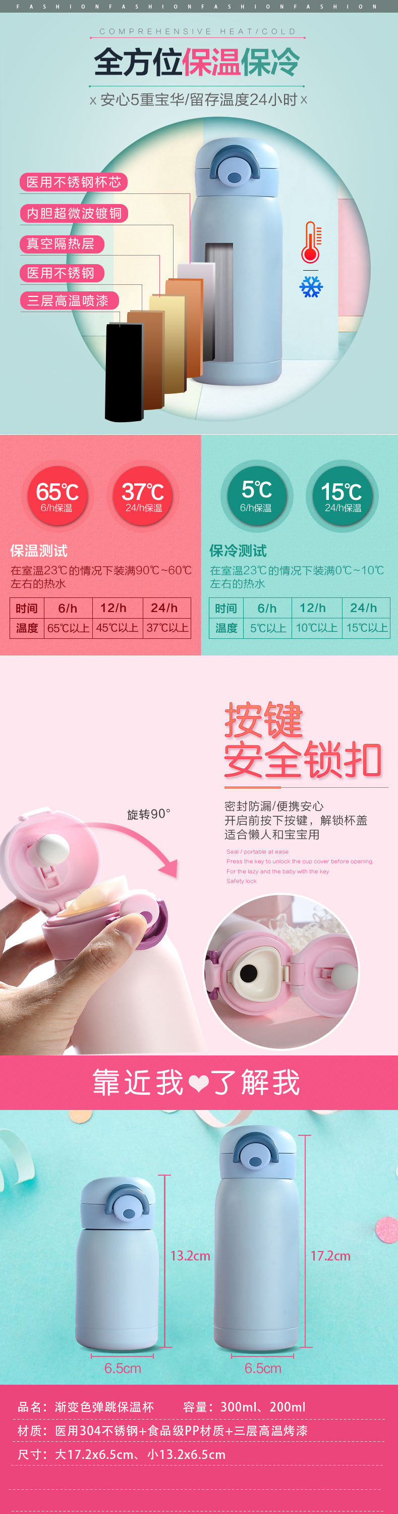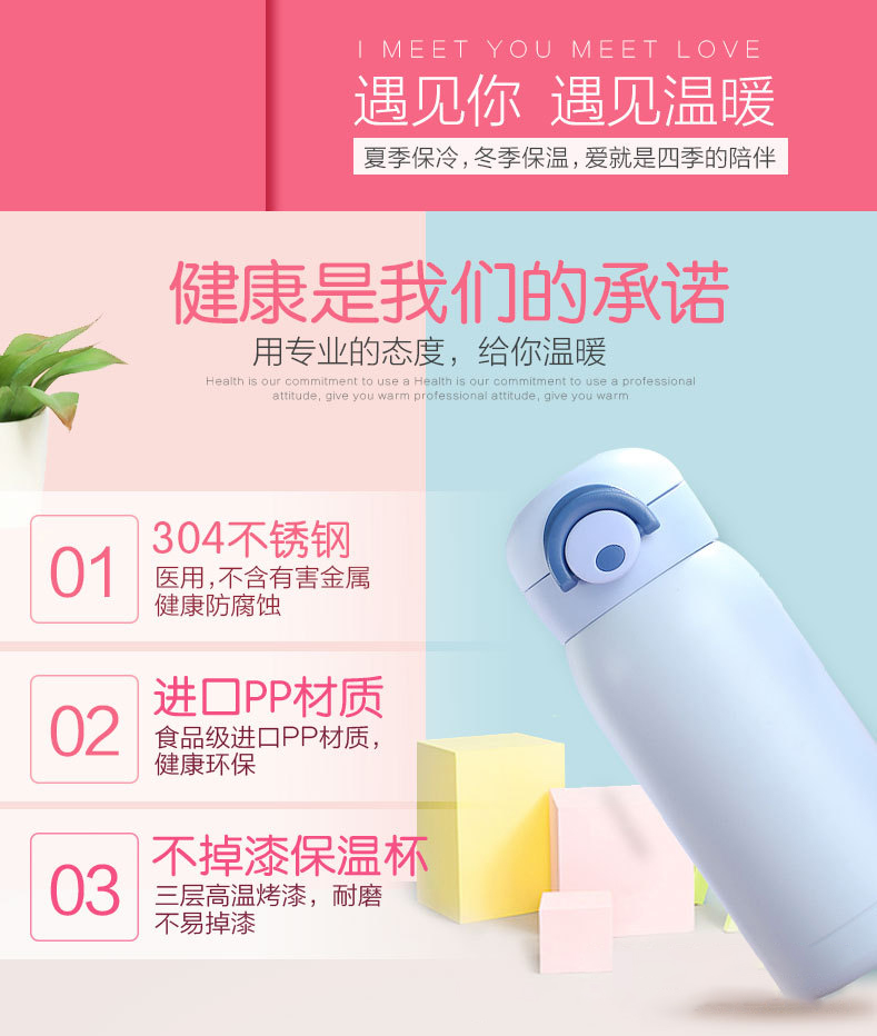 可愛彈跳不銹鋼雙層保溫杯304新款學(xué)生彈跳杯兒童隨手杯
