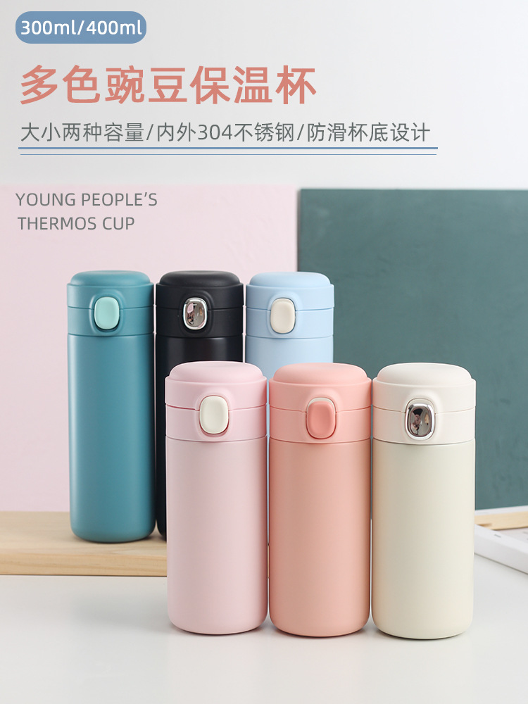 新款彈跳鎖扣不銹鋼真空雙層保溫杯豌豆杯子禮品定制水杯批發
